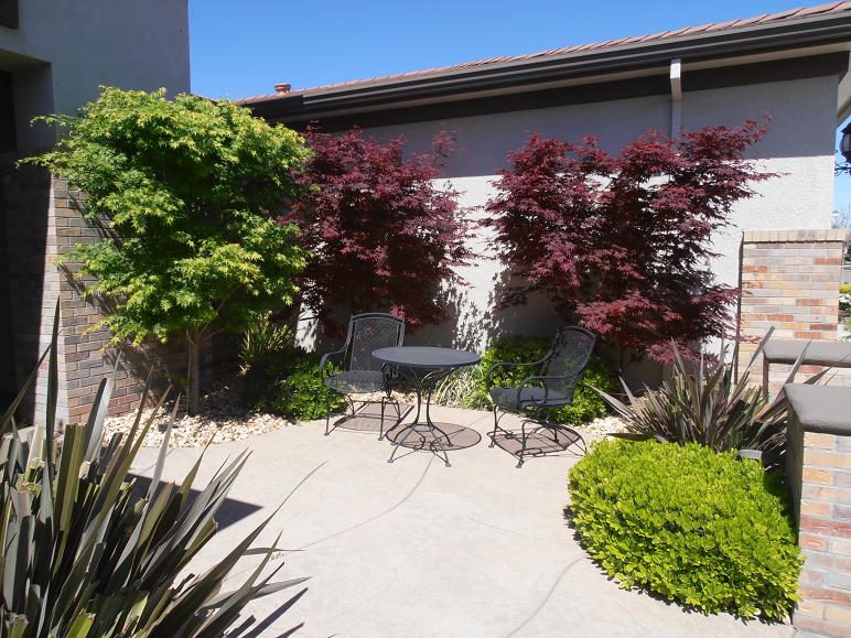 Patio with colored and stamped concrete |
