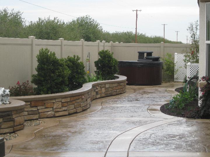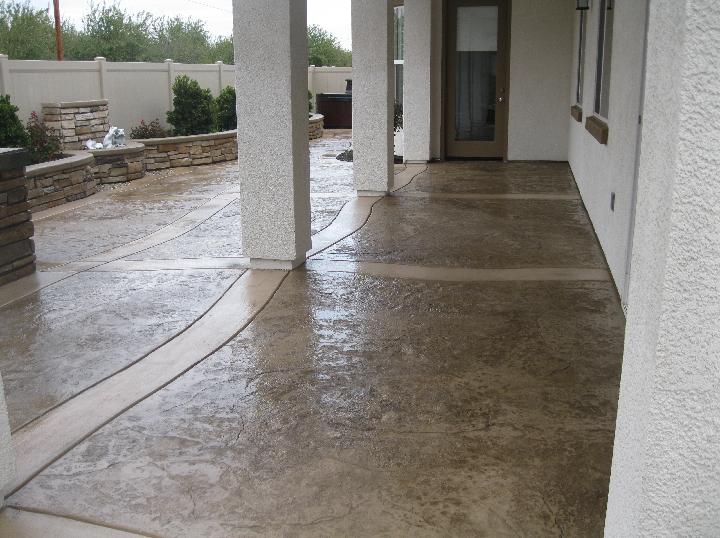 Patio with colored and stamped concrete |